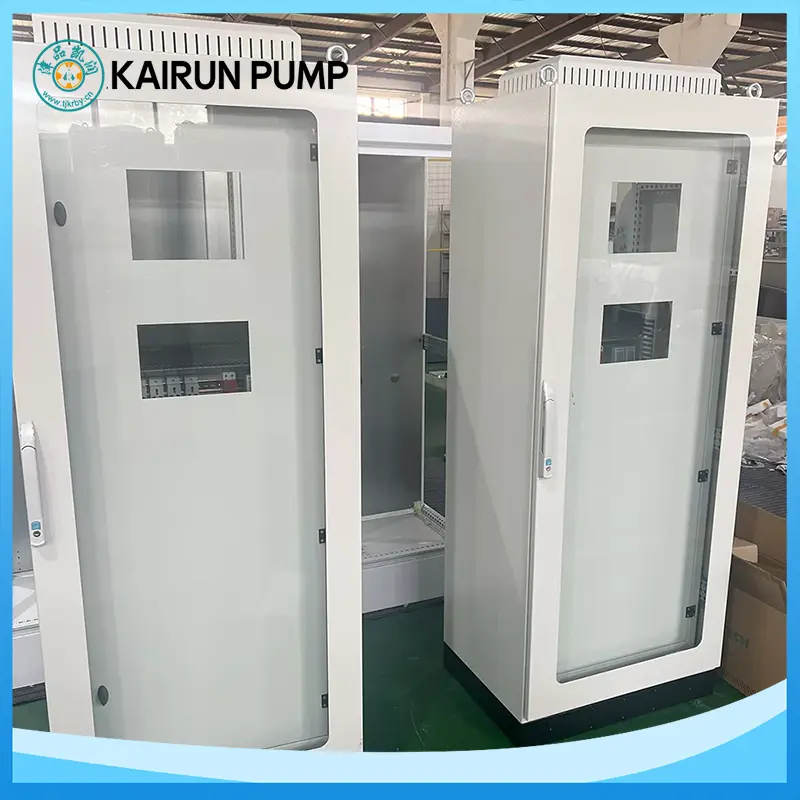 Kaapin runko on valmistettu korkealaatuisesta hiiliteräksestä tai ruostumattomasta teräksestä, joka on käsitelty korkeajännitteisellä sähköstaattisella ruiskulla ja saavuttaa IP54-suojausluokan. Se on pöly- ja kosteudenkestävä, sopii sisä- ja ulkoasennukseen. Sisäosat on järjestetty siististi ja johdotus on vankka, mikä varmistaa pitkän aikavälin vakaan toiminnan. Ohjauskaappien tehoalue on 15-90 kW, ja ne tukevat joustavasti laitteita, kuten pumppuja, puhaltimia, kompressoreja ja kuljettimia, joten ne sopivat ihanteellisesti LVI-, teollisuustuotanto-, maatalouden kastelu- ja palontorjuntajärjestelmiin.